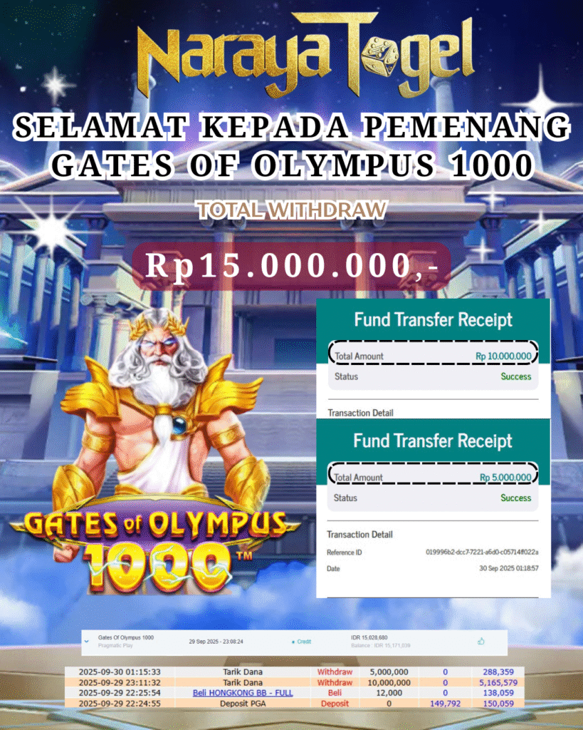 Masih ragu dengan NARAYA TOGEL bos ? Di mana bandar togel online sekarang yang terpercaya seperti NARAYATOGEL ? Bandar yang mengirimkan kemenangan member tanpa bertele – tele. Jadi…. tidak perlu khawatir pada situs NARAYATOGEL karena kemenangan anda berapapun akan dibayarakan hingga lunas kepada pemenang