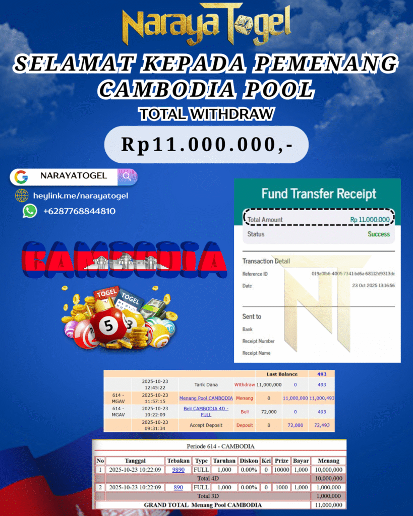 BUKTI JP CAMBODIA POOL Rp 11.000.000