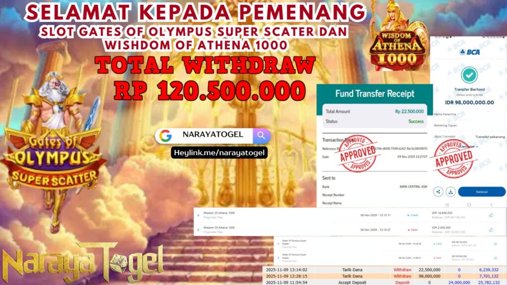 selamat kepada User id MOM*** Telah berhasil mendapatkan kemenangan besar pada permainan GATES OF OLYMPUS SUPER SCATTER AND WISHDOM OF ATHENA 1000 Dengan kemenangan Sebesar Rp 120.500.000 Setelah mengisi formulir withdraw dengan kurang waktu hanya 1 – 10 menit pihak NARAYATOGEL sudah melakukan transfer kepada pemiliknya dan dana sudah masuk ke rekening id tersebut oleh pemenang. Bukti pembayaran yang kami berikan merupakan bukti pembayaran yang SAH / VALID yang langsung di dapatkan melalui tanda transfer transaksi berhasil dari Bank yang di tuju.