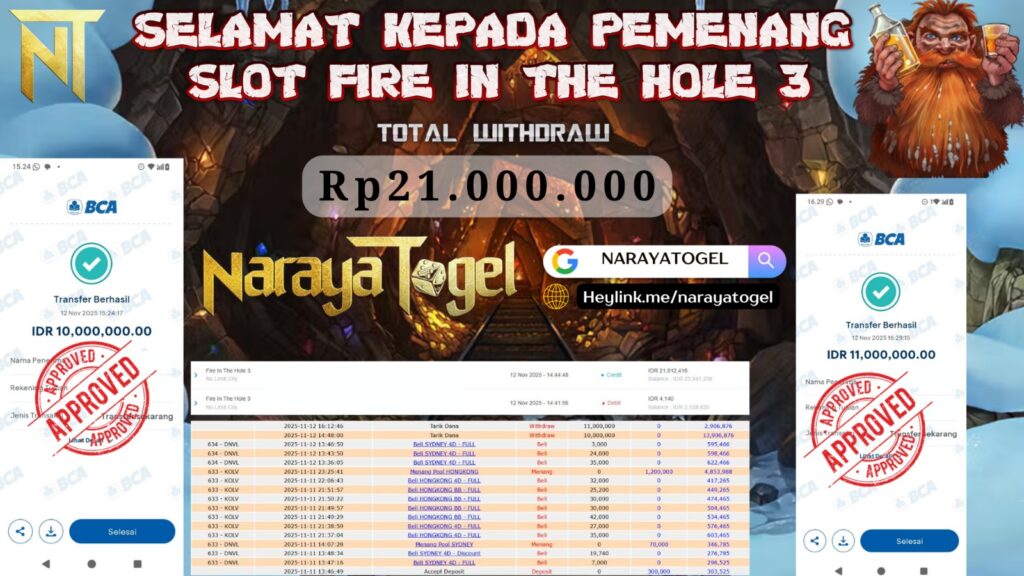 selamat kepada User id CUB*** Telah berhasil mendapatkan kemenangan besar pada permainan   SLOT FIRE IN THE HOLE 3 Dengan kemenangan Sebesar  Rp 21.000.000 Setelah mengisi formulir withdraw dengan kurang waktu hanya 1 – 10 menit pihak NARAYATOGEL sudah melakukan transfer kepada pemiliknya dan dana sudah masuk ke rekening id tersebut oleh pemenang. Bukti pembayaran yang kami berikan merupakan bukti pembayaran yang SAH / VALID yang langsung di dapatkan melalui tanda transfer transaksi berhasil dari Bank yang di tuju.