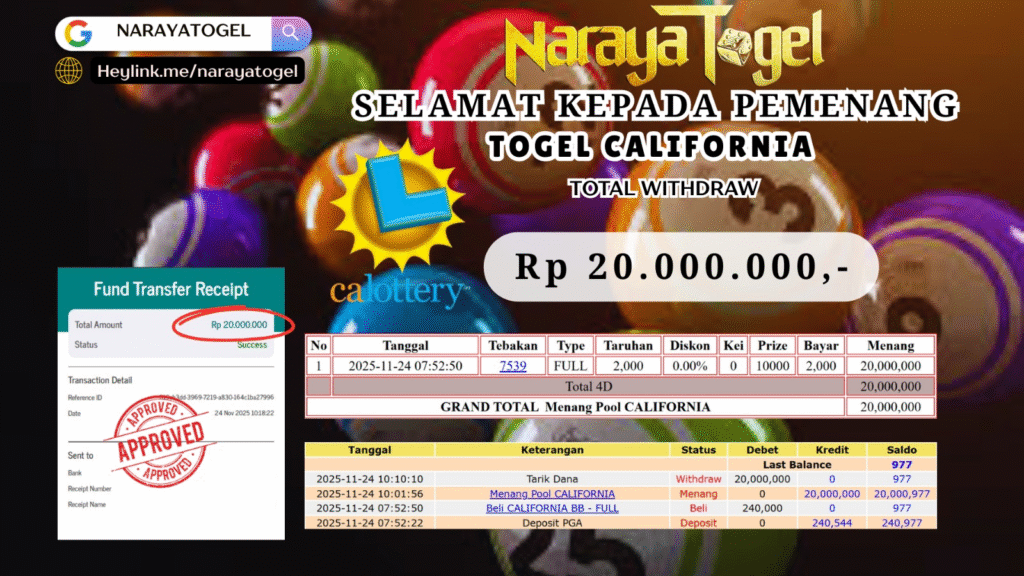 Masih ragu dengan NARAYA TOGEL bos ? Di mana bandar togel online sekarang yang terpercaya seperti NARAYATOGEL ? Bandar yang mengirimkan kemenangan member tanpa bertele – tele. Jadi…. tidak perlu khawatir pada situs NARAYA TOGEL karena kemenangan anda berapapun akan dibayarakan hingga lunas kepada pemenang.