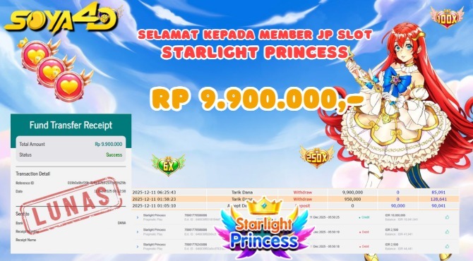 Selamat kepada User id I GED**** Telah berhasil mendapatkan kemenangan besar pada permainanSTARLIGHT PRINCESS 1000    Dengan kemenangan Sebesar  Rp9.900.000 Setelah mengisi formulir withdraw dengan kurang waktu hanya 1 – 10 menit pihak NARAYATOGEL sudah melakukan transfer kepada pemiliknya dan dana sudah masuk ke rekening id tersebut oleh pemenang. Bukti pembayaran yang kami berikan merupakan bukti pembayaran yang SAH / VALID yang langsung di dapatkan melalui tanda transfer transaksi berhasil dari Bank yang di tuju.