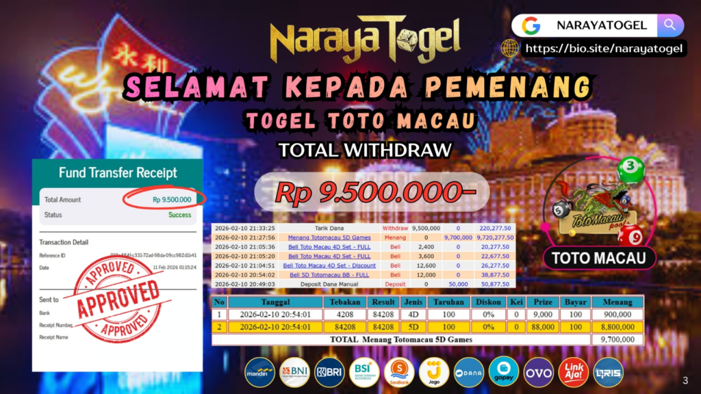 Masih ragu dengan NARAYA TOGEL bos ? Di mana bandar togel online sekarang yang terpercaya seperti NARAYATOGEL ? Bandar yang mengirimkan kemenangan member tanpa bertele – tele. Jadi…. tidak perlu khawatir pada situs NARAYA TOGEL karena kemenangan anda berapapun akan dibayarakan hingga lunas kepada pemenang.