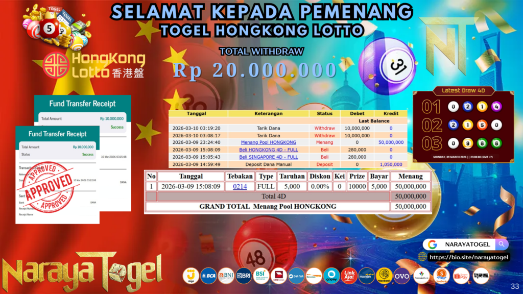 Masih ragu dengan NARAYA TOGEL bos ? Di mana bandar togel online sekarang yang terpercaya seperti NARAYATOGEL ? Bandar yang mengirimkan kemenangan member tanpa bertele – tele. Jadi…. tidak perlu khawatir pada situs NARAYA TOGEL karena kemenangan anda berapapun akan dibayarakan hingga lunas kepada pemenang.