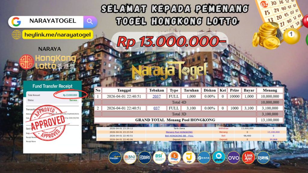 Masih ragu dengan NARAYA TOGEL bos ? Di mana bandar togel online sekarang yang terpercaya seperti NARAYATOGEL ? Bandar yang mengirimkan kemenangan member tanpa bertele – tele. Jadi…. tidak perlu khawatir pada situs NARAYA TOGEL karena kemenangan anda berapapun akan dibayarakan hingga lunas kepada pemenang.