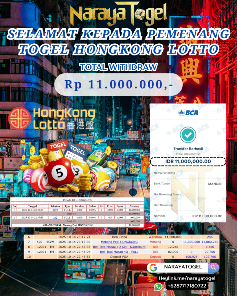 BUKTI JP TOGEL HONGKONG LOTTO Rp 11.000.000