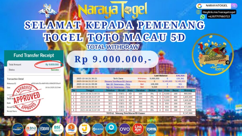 BUKTI JP TOGEL TOTO MACAU5D Rp 9.000.000