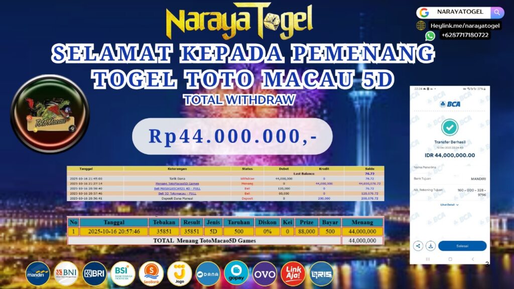 BUKTI JP TOGEL TOTO MACAU5D Rp 44.000.000