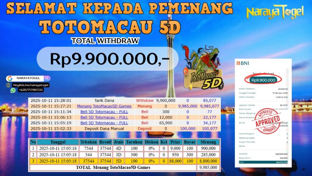BUKTI JP TOTO MACAU 5D Rp 9.900.000
