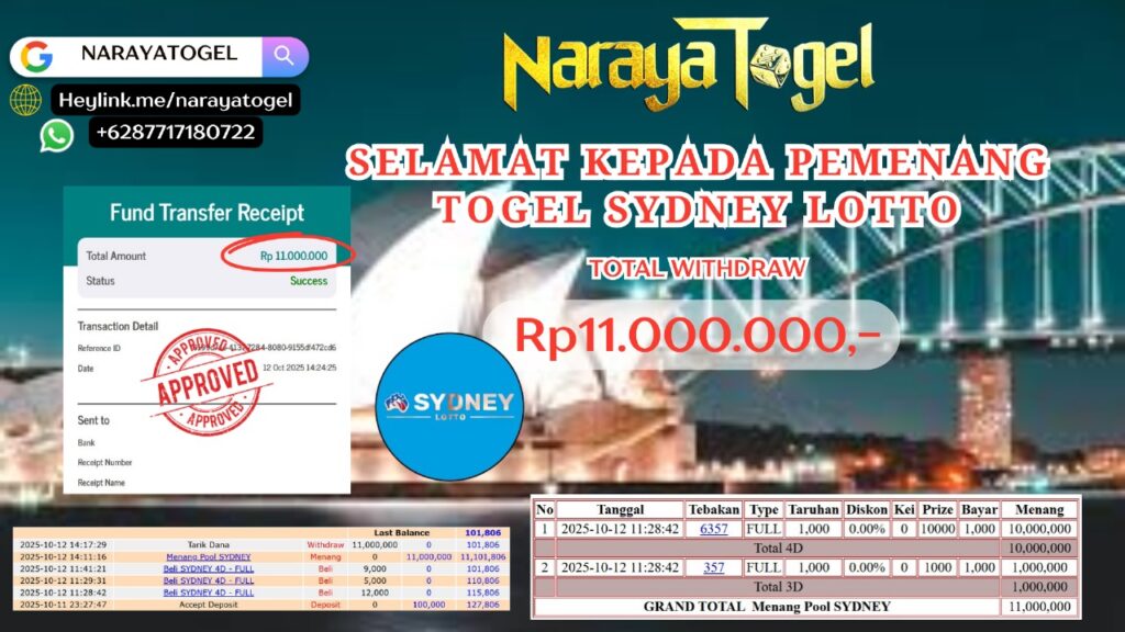 BUKTI JP TOGEL SYDNEY LOTTO Rp 11.000.000