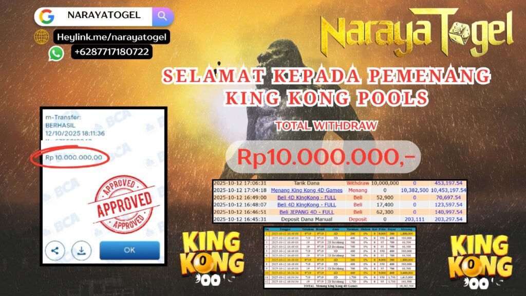 BUKTI JP KING KONG POOLS Rp 10.000.000